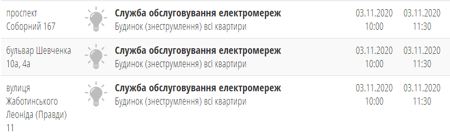 Сегодня, 3 ноября, в течение дня в Запорожье в разных районах города жители домов останутся временно без электроэнергии.