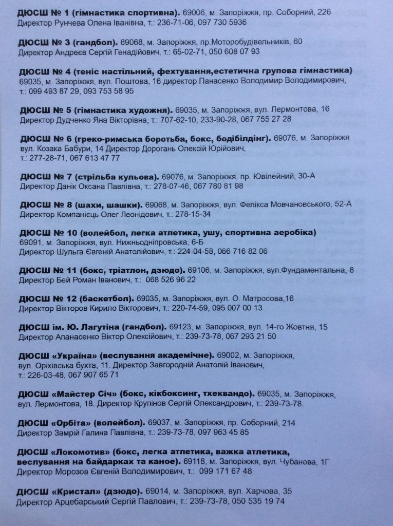 В сети опубликовали перечень спортивных школ Запорожья, в которых могут заниматься ваши дети.