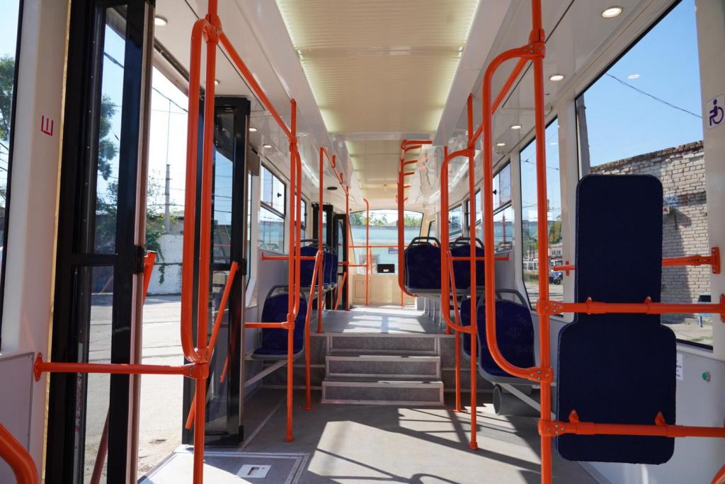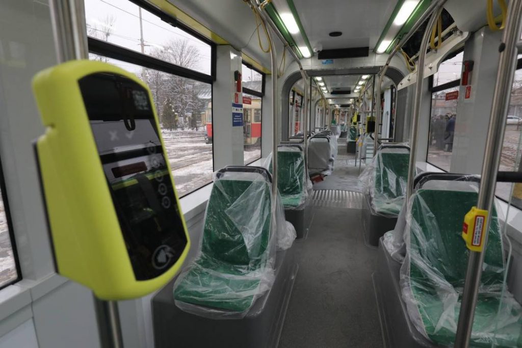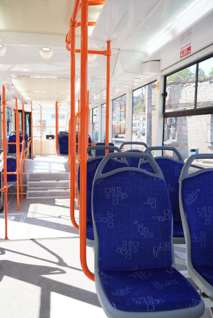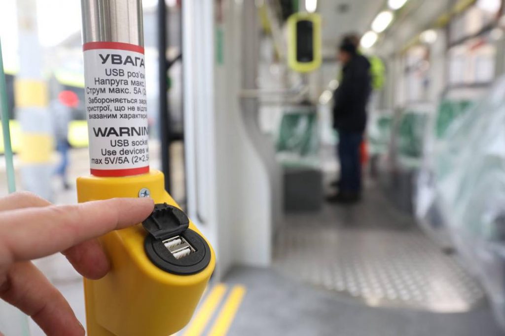 Как видно на фото, в трамваях есть также USB-входы для подзарядки телефонов, а снаруди и внтури выглядят они стильно и современно.