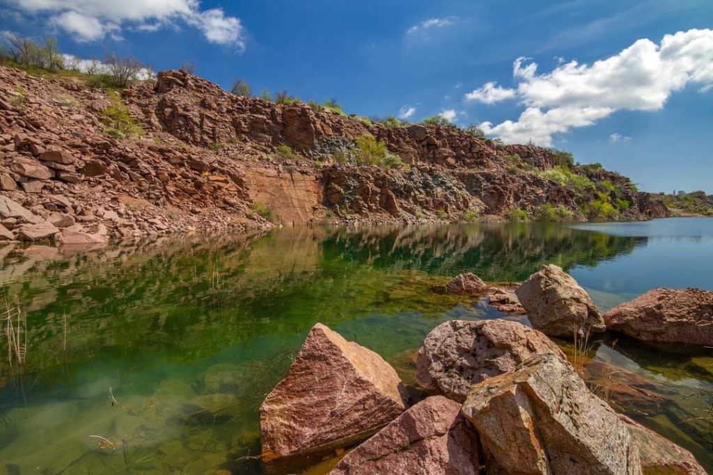 Справка. Токовский карьер — не самое известное, но очень красивое место, спрятанное среди природы Днепропетровской области. Особенность карьера в том, что здесь проводятся работы по добыче гранита. Карьер не очень большой, но достаточно глубокий — до 15 метров с видимостью в два-три метра. На дне карьера можно увидеть гранитные плиты и металлические конструкции. Гранит, который добывают в действующем карьере, коричнево-красного цвета — именно из него построено здание мавзолея в Москве. Чем заняться Токовский карьер — очень живописное место, при этом похожих карьеров в Украине очень мало, поэтому сюда можно приехать ради необычных видов и красивых снимков. Ещё более популярным это место становится благодаря тому, что рядом находится Шолоховский водопад — в нем можно искупаться, а ещё попробовать половить рыбу; вокруг растут редкостные и лекарственные растения. Добраться до Токовского карьера можно от Никополя или Покрова.