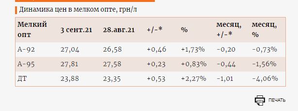 Как отмечается. максимальный рост наблюдался на Кременчугском заводе, где за неделю прайсы выросли на 1,09 грн/л, до 24,04 грн/л, его контрагенты в среднем озвучивали цену на уровне 23,70 грн/л.