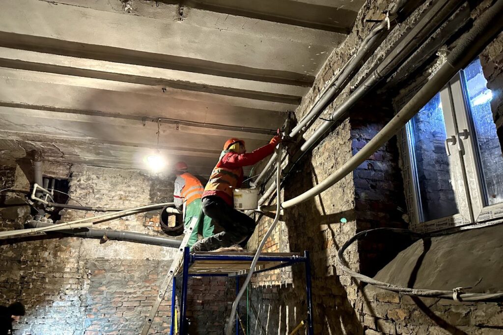 Також у відновлюваному під’їзді будинку встановлено вікна та накрито гідробар’єром покрівлю. У підвалі, в якому облаштують укриття, тривають штукатурні роботи.