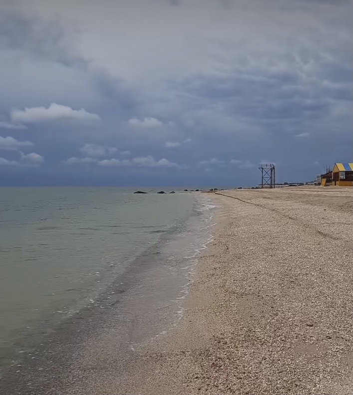 На відео показали локація біля бази Салют, ліворуч розташовано Центральний пляж», праворуч — Санаторський.