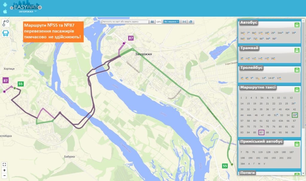 Так, йдеться про маршрути № 87 «пр. Металургів-Аптека (вул.Рубана)» та № 55 «вул. Рубана-вокзал Запоріжжя-1».