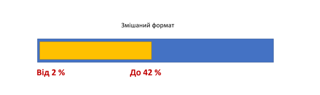 Змішаний формат підтримують від 2 % до 42 % абсолютної більшості шкіл і м. Запоріжжя, і Запорізького району в цілому.