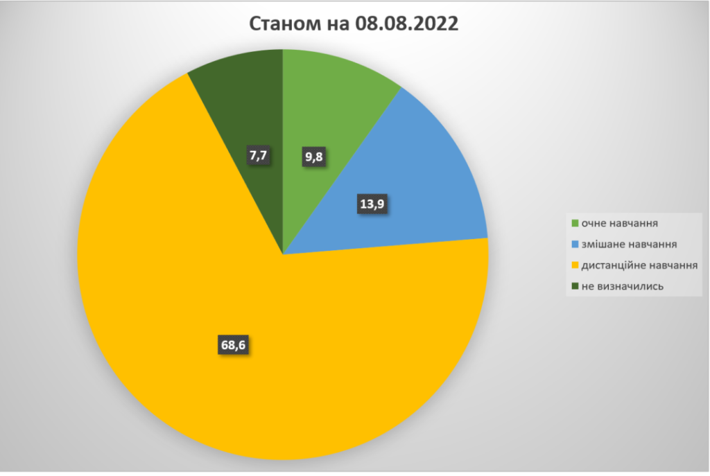 Разом з цим, формат організації освітнього процесу у новому навчальному році визначатиметься з урахуванням безпекової ситуації 25.08.2022. Вирішення питань щодо запровадження очного навчання, забезпечення підвезення учнів, харчування школярів тощо можливе лише після припинення бойових дій та деокупації території області.
