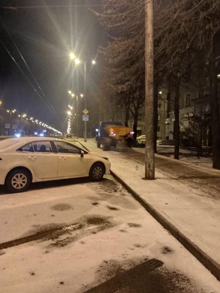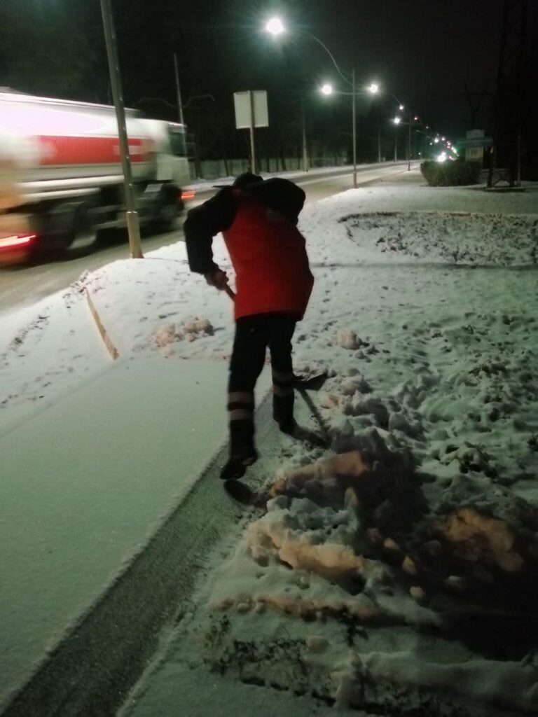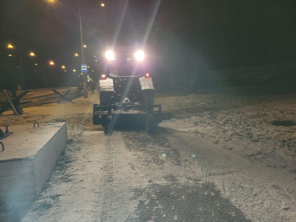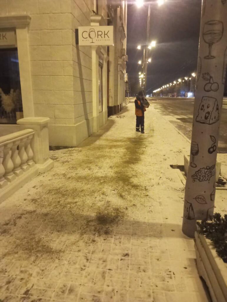 Всю ніч комунальники очищали та обробляли протиожеледними засобами дороги та тротуари у Запоріжжі.