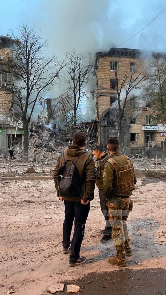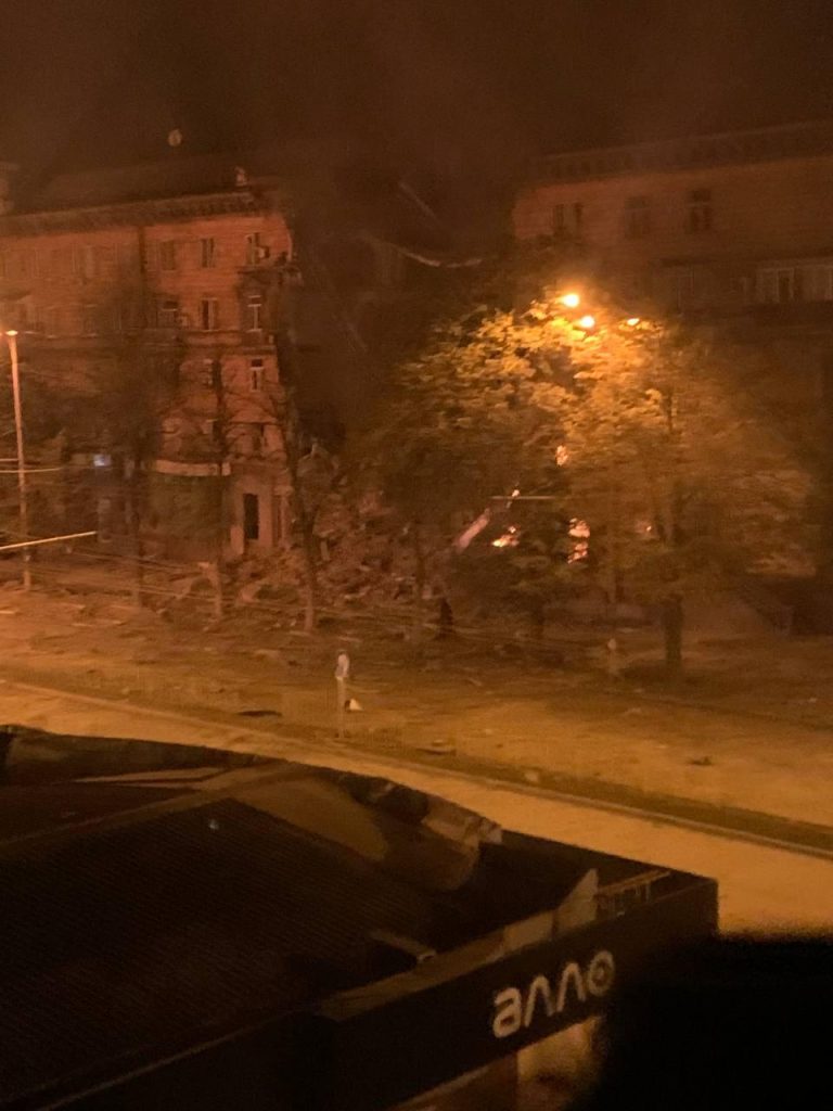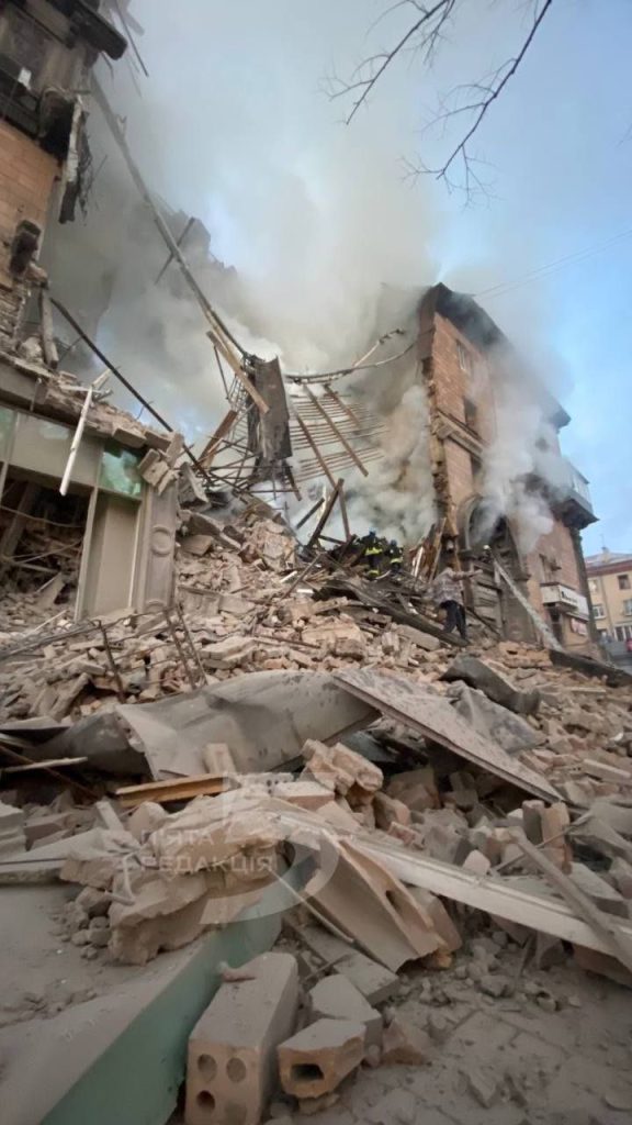 Російські терористи завдали потужного ракетного удару по центру м. Запоріжжя. Зруйновані багатоквартирні будинки, проводиться рятувальна операція.