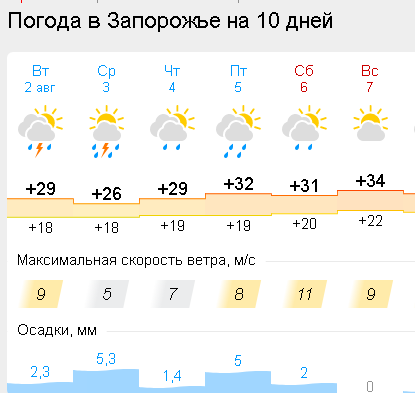Нагадаємо, за попереднім прогнозом у Запоріжжі за перший тиждень серпня мала випасти місячна норма опадів. Кожного дня очікувалась гроза.
