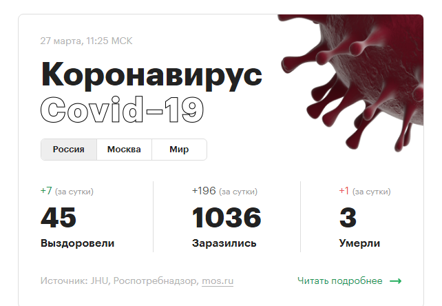 Всего в России уже более 1000 подтвержденных случаев коронавируса. Большая часть из них — в Москве.