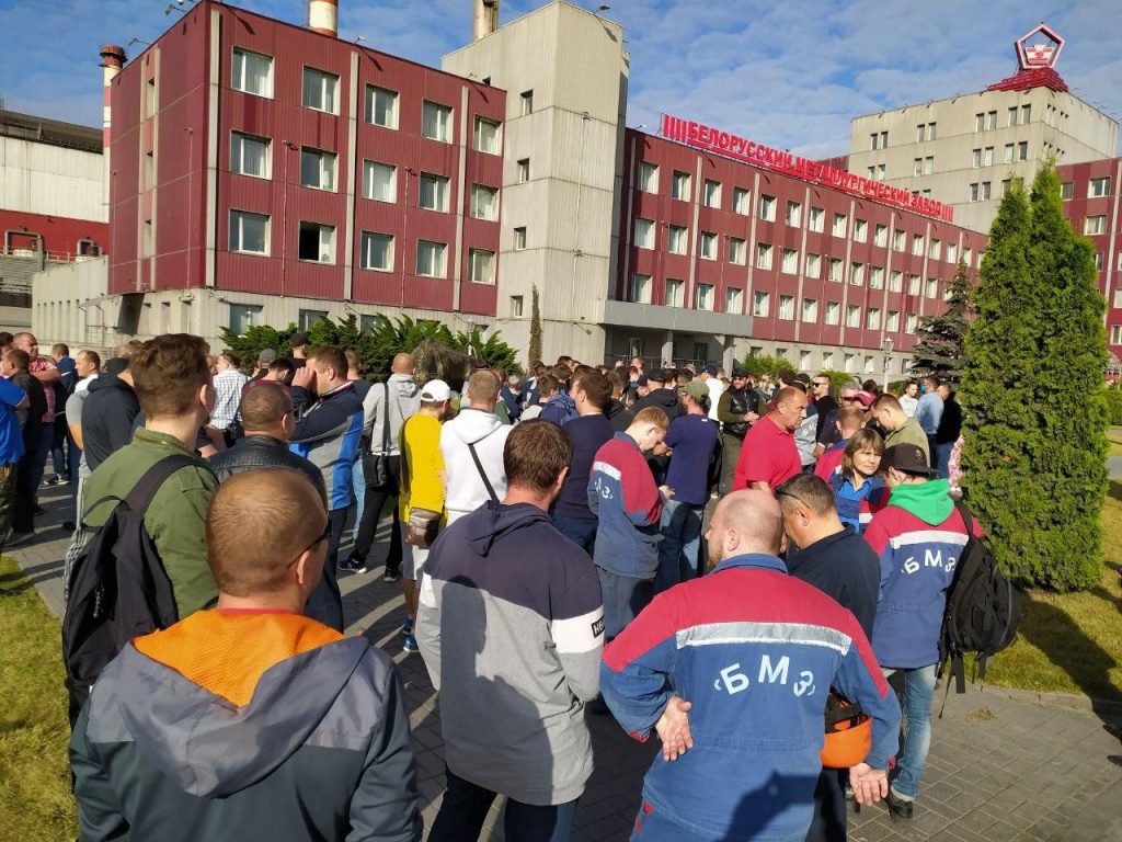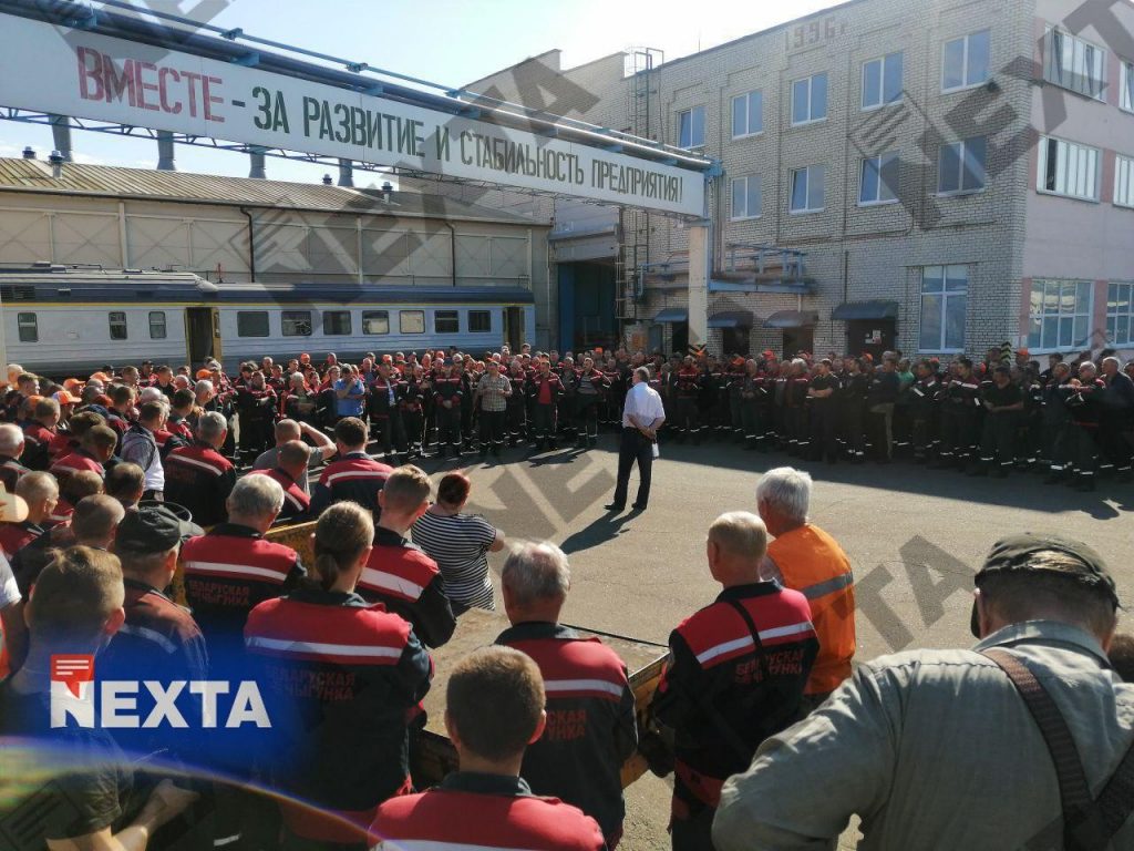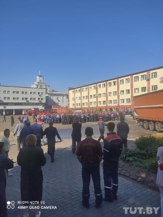 Гродно АЗОТ. Люди открыли ворота и вышли за территорию предприятия.