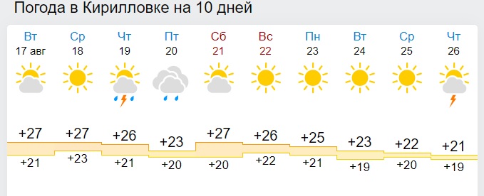 Сегодня, 17 августа, Кирилловка располагает к отличному отдыху.