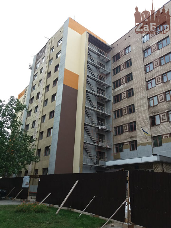 В Запорожье в общежитиях № 3 и №4 Запорожского национального университета выполняют капитальный ремонт. Уже обновлен и утеплен фасад.