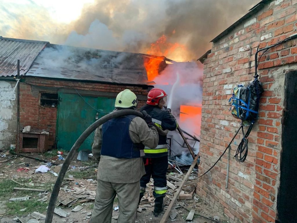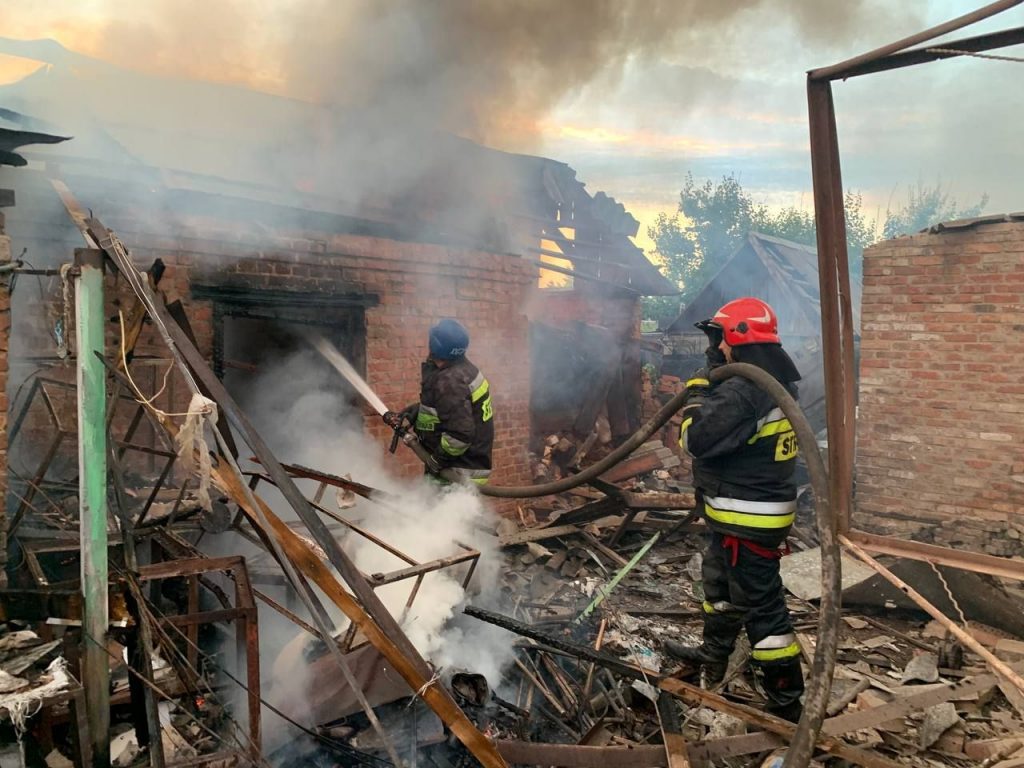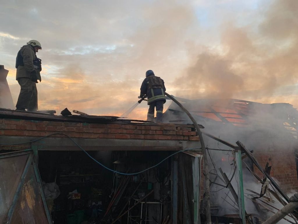 На снимках видно, что в домах повылетали окна, двери, а также разрушена крыша. Тушением пожара занимались сотрудники ГСЧС.
