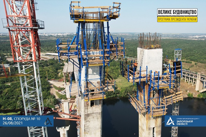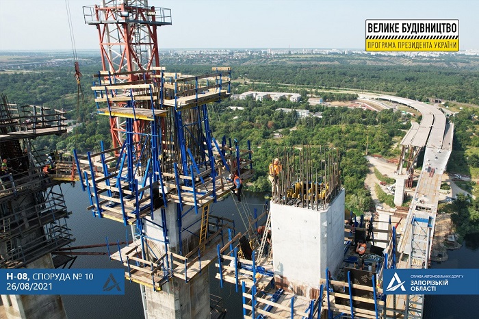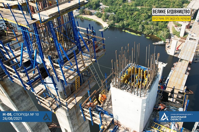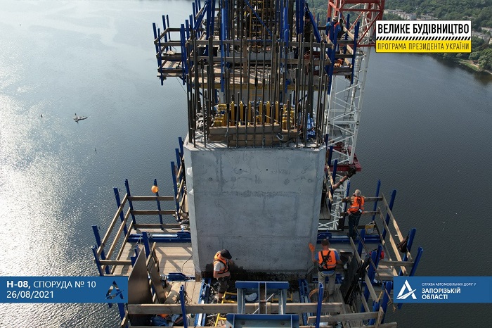 В Запорожье продолжается строительство вантового моста: уже завершили бетонирование первой захватки на обеих ветвях пилона.
