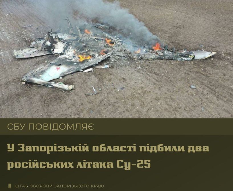 «Вражескую авиацию поразили из переносных зенитно-ракетных комплексов. По сообщению СБУ, один Су-25 был уничтожен, второй получил повреждение», — отметили в сообщении.