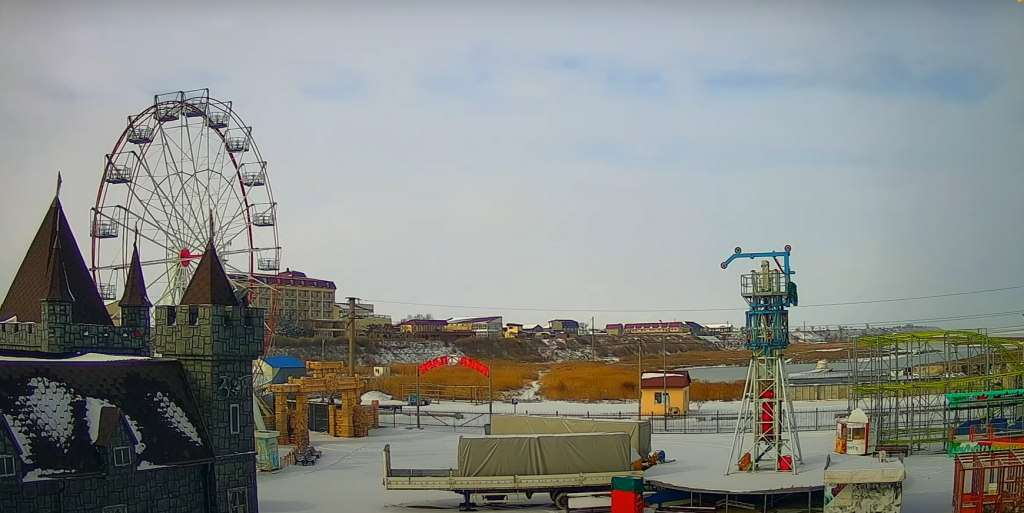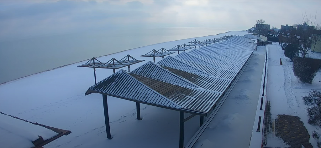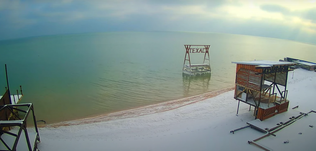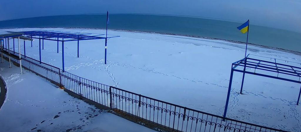 Так, на видеозаписях веб-камер показаны заснеженные пляжи, аквапарки и набережные запорожских курортов — Кирилловки, а также — Арабатской Стрелки, Бердянска и Приморска.