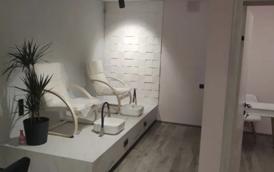 - Пространство салона рассчитано на 9 рабочих мест, включая места для мастеров маникюра и педикюра, стилистов или парикмахеров, визажиста или бровиста, отдельный кабинет для косметолога, а также дополнительный кабинет для кушетки.