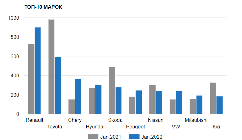 Также, в ТОП-10 автомобильных брендов января 2022 года вошли: