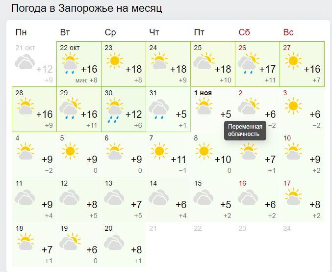 В Запорожье в свою очередь ожидается спад температуры и облачность, но еще будут солнечные дни. Прогноз: gismetio.