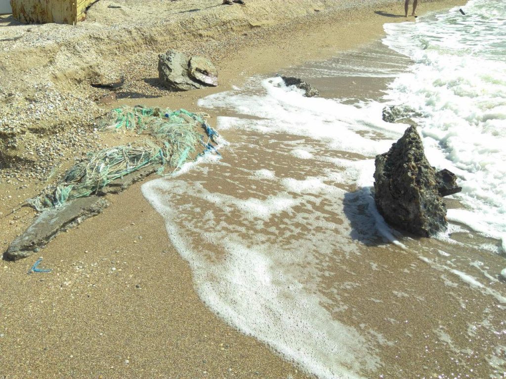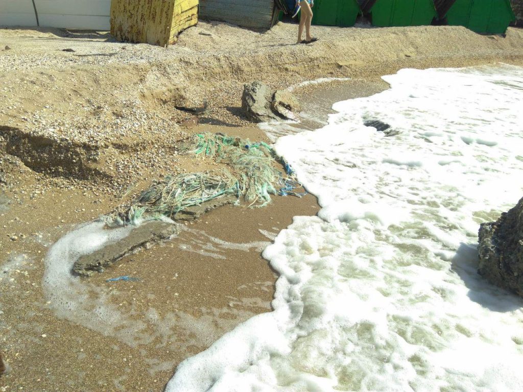 Крім цього, в результаті шторму в Азовському морі, на узбережжі викинуло різне сміття, рибальські мережі і водорості.