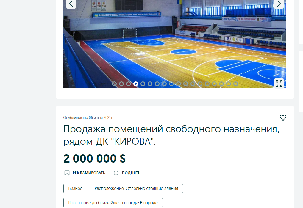 Параллельно был выставлен на продажу и дворец спорта «ЗАС», расположенный в районе проспекта Металлургов.