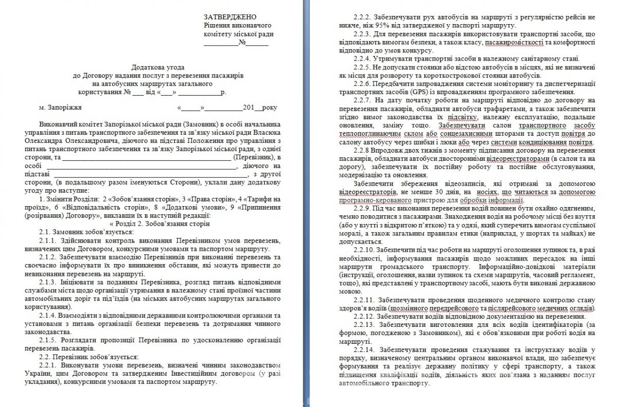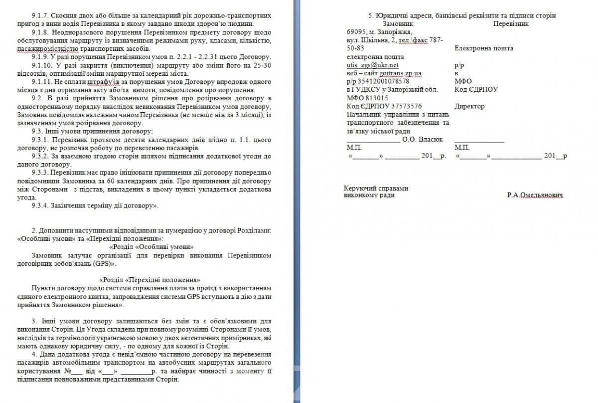 В Запорожье городские власти решили «подвесить» автомобильных перевозчиков. На последнем заседании исполкома Запорожского горсовета управление транспорта подготовило дополнительные соглашения к договорам, в которые внесли ряд изменений. В частности, изменения были внесены в ряд следующих разделов:
