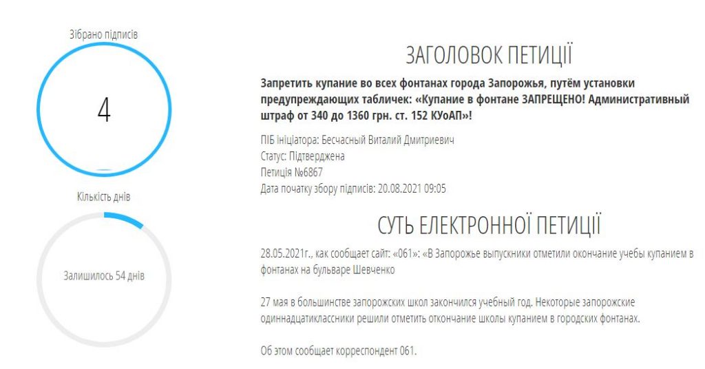 Об этом идет речь в петиции на сайте Запорожского горсовета.
