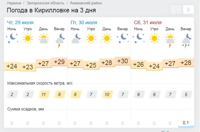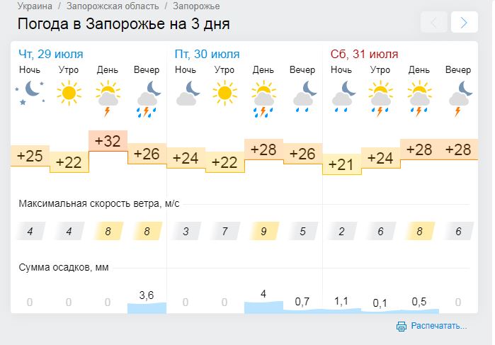 При этом температурный режим останется почти без изменений. В Запорожье сегодня прогнозируется до +32 градусов, по области — до +35 градусов.