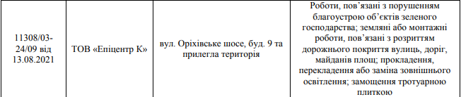 Разрешение на нарушение объектов благоустройства территорий общего пользования в пределах Коммунарского района компании «Эпицентр» согласовали в Запорожском городском совете.