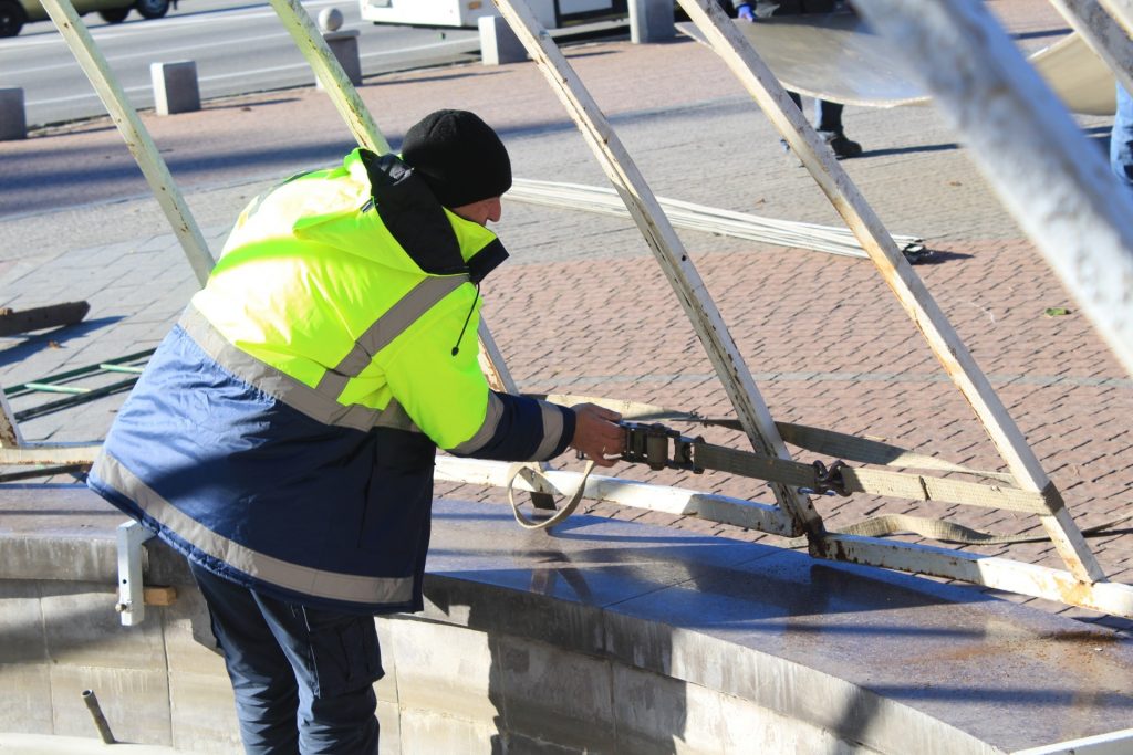 После их выключения работники КП «Титан» сливают воду, моют чаши, снимают форсунки и насосы для последующего ремонта и приведения в порядок в мастерской. В настоящее время начался заключительный этап – покрытие конструкций шатрами с подсветкой, передает пресс-служба Запорожского городского совета.