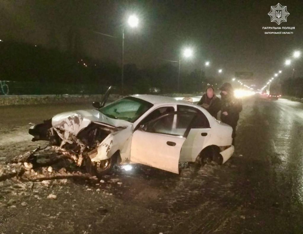 Вчера, 3 января, в Запорожье водитель врезался в столб.