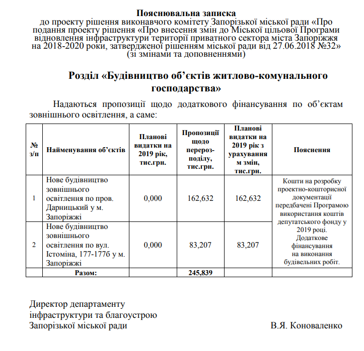 Всего на капитальный ремонт объектов внешнего освещения в Запорожье в 2019 году предусмотрено немногим более 1 миллиона гривен.