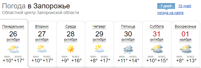 Конец октября в Запорожье выдастся прохладным.