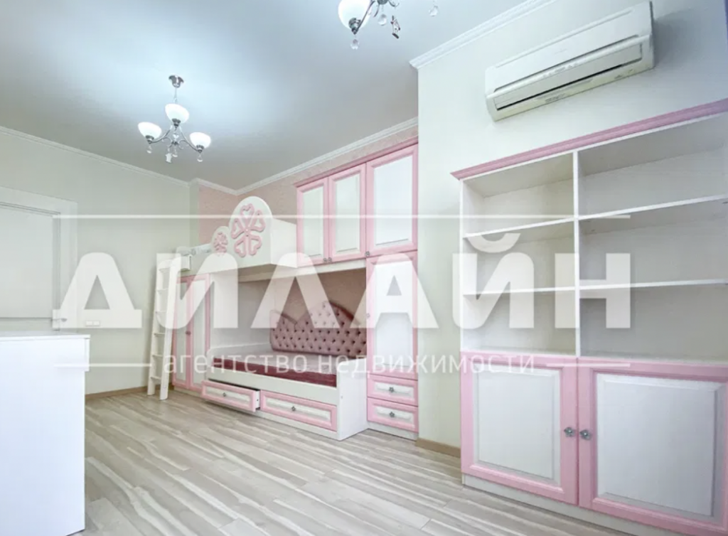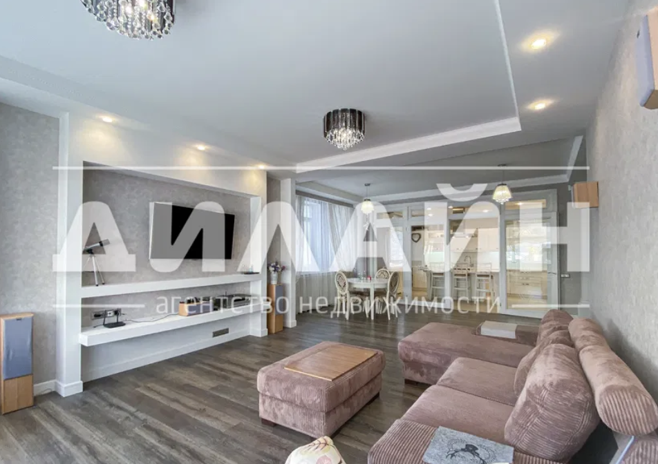 Квартира имеет качественный ремонт по дизайнерскому проекту, высокие потолки, натуральное дерево и итальянскую мебель. Также к квартире входят два крытых паркоместа и капитальная крытая беседка с барбекю-зоной.
