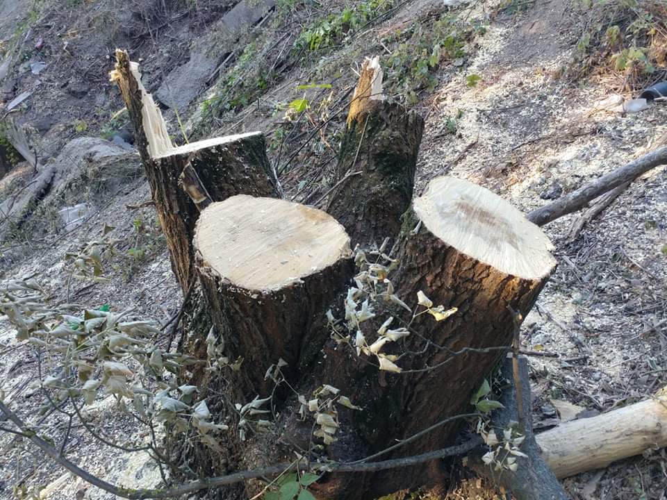 Под спил попали деревья по обе стороны трассы. При этом со стороны, которая относится к лесничеству, клейм последних о вырубке деревьев нет, что вероятно свидетельствует о незаконных действиях.