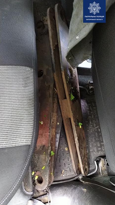 Патрульные остановили транспортное средство, в котором находились водитель и двое пассажиров. Согласно ст. 34 ЗУ «О Национальной полиции», инспекторы провели поверхностную проверку автомобиля и обнаружили 2 металлические конструкции в багажном отделении и еще две — в салоне.