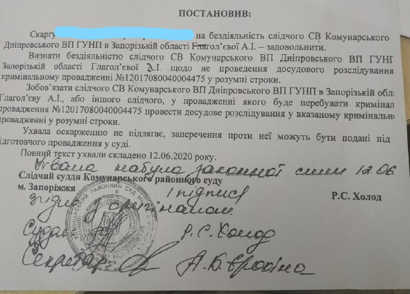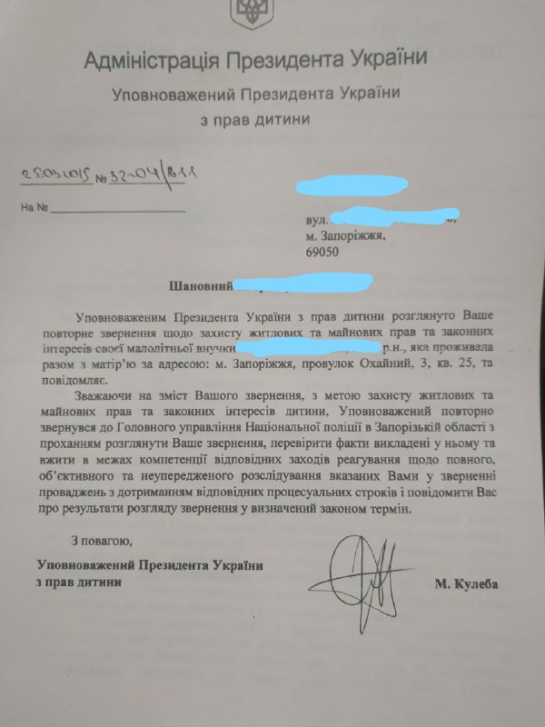От редакции. Мы обращаемся к главе ГУНП в Запорожской области области Николаю Лушпиенко с просьбой обратить внимание на систематическое игнорирование прав человека в этой ситуации. 3 года нерассмотрения дела играет на руку подозреваемому, и только усугубляет ситуация для потерпевших. Тем более, жить в собственной квартире не может ребенок.