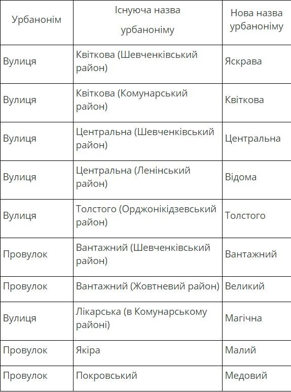 Переулок Мельничный числился сразу в двух районах. Теперь его разделили и переименовали. Переулок Безымянный, который соединяет улицу Чаривную и Иванова, в Шевченковском районе, сделали улицей, а переулок Безымянный в Коммунарском районе оставили без изменений.