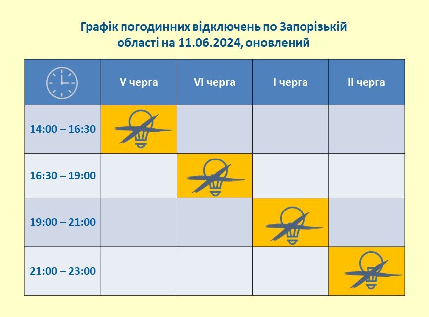 В связи с этим по Запорожской области ГПВ сегодня будут действовать с 14:00 до 23:00:
