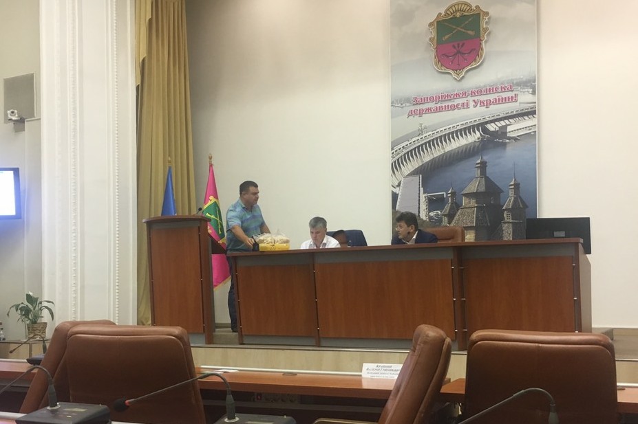 В конце заявления Рябцев вручил Буряку «сухари» от жителей Запорожья, заявив, что они ему вскоре пригодятся.