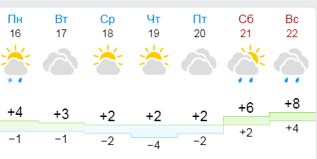 Облачная погода продержится в городе всю следующую неделю. Несколько дней подряд по ночам обещают -4 градуса.