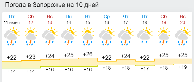 На этих выходных и на протяжении следующей неделе сохранятся осадки и грозы. Максимально дневные температуры поднимутся до +26 градусов.