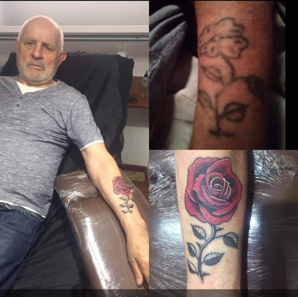 На руке у Рудольфа Федоровича есть цветная тату в виде розы. Он плохо понимает, ведет себя как ребенок.