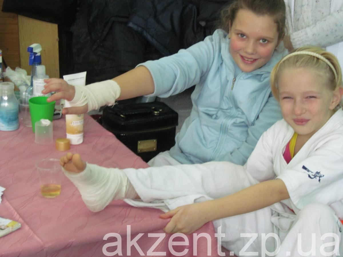 Боевые виды спорта, конечно же, не возможны без повреждений. И здесь нужна квалифицированная и быстрая помощь, особенно если учесть что это дети.  В зале работал уголок скорой медицинской помощи. Синяки, ушибы, порезы — неотъемлемый атрибут всех контактных боев.  В этот раз славу богу обошлось без серьезных травм и повреждений, но все же за помощью в уголок обращались — как мальчики, так и девочки. Интересно, что сама помощь оказывалась не только традиционным набором из аптечки первой помощи, но и про помощи оздоровительных и лечебных препаратов одной из израильских фирм.