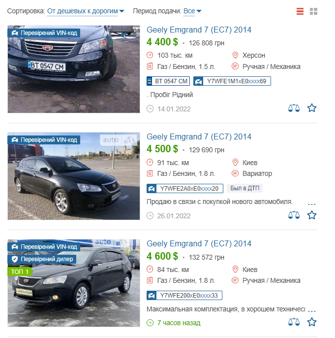 На наиболее крупном автобазаре Украины среди всех отечественных сайтов подобного рода AUTO.RIA, минимальная стоимость такого авто составляет 126 808 грн (4400$).