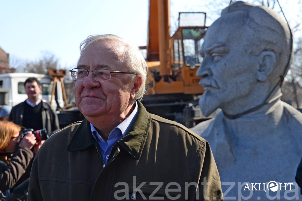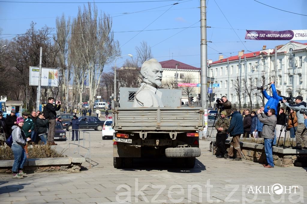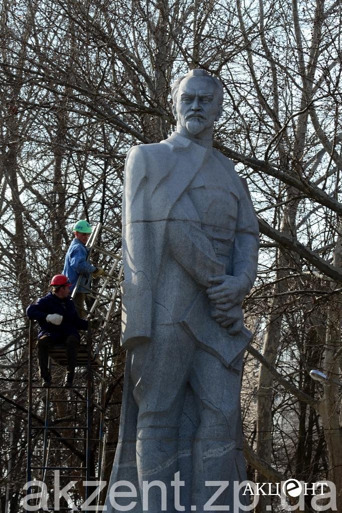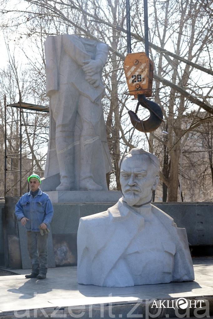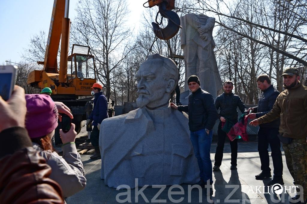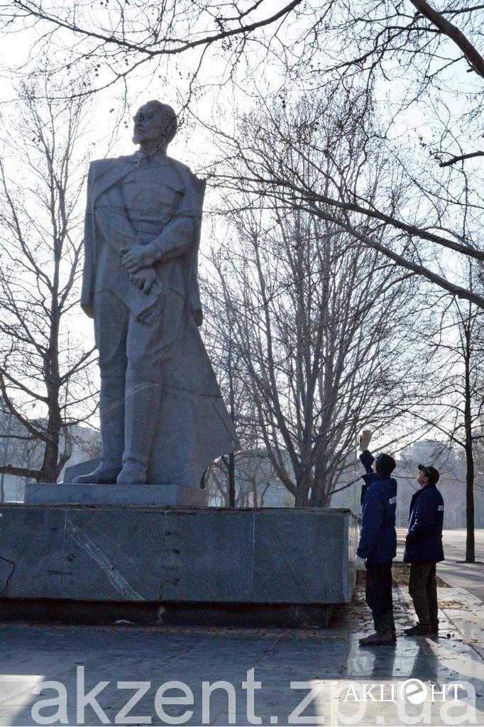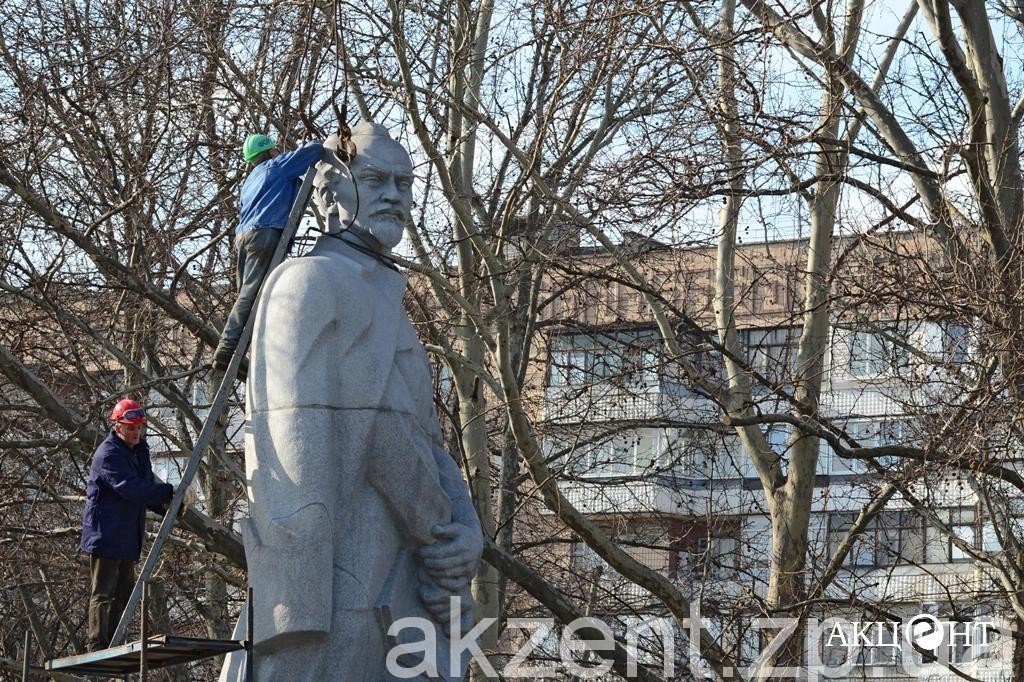 Демонтажем занимаются рабочие фирмы «Форт». Напомним, демонтаж памятников Ленину, Дзержинскому и Орджоникидзе обойдется в 311, 2 тысяч гривен. Самым дорогим оказался Ленин — на его снос потратят 199 тысяч гривен.
