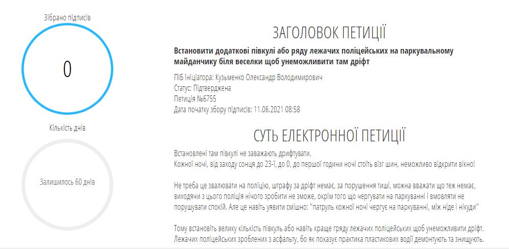 На данный момент петиция еще не собрала ни одной подписи, так как была опубликована несколько часов назад. Чтобы в мэрии её рассмотрели, подписей нужно 750.