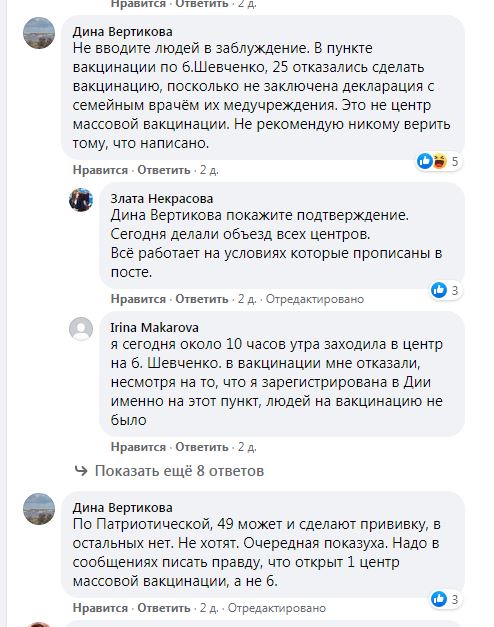Однако оказалось, что пункт в Центре молодежи, 28 июня не работал, а в центре по б. Шевченко, 25 пришедшим в выходные отказывали. Причина — декларация с семейным врачем из другого медучреждения.