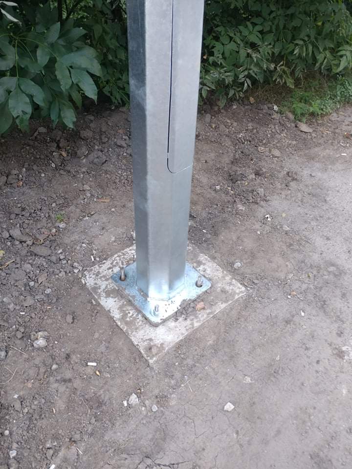 Уже проведены работы по бетонированию основы, установлены мачты освещения.